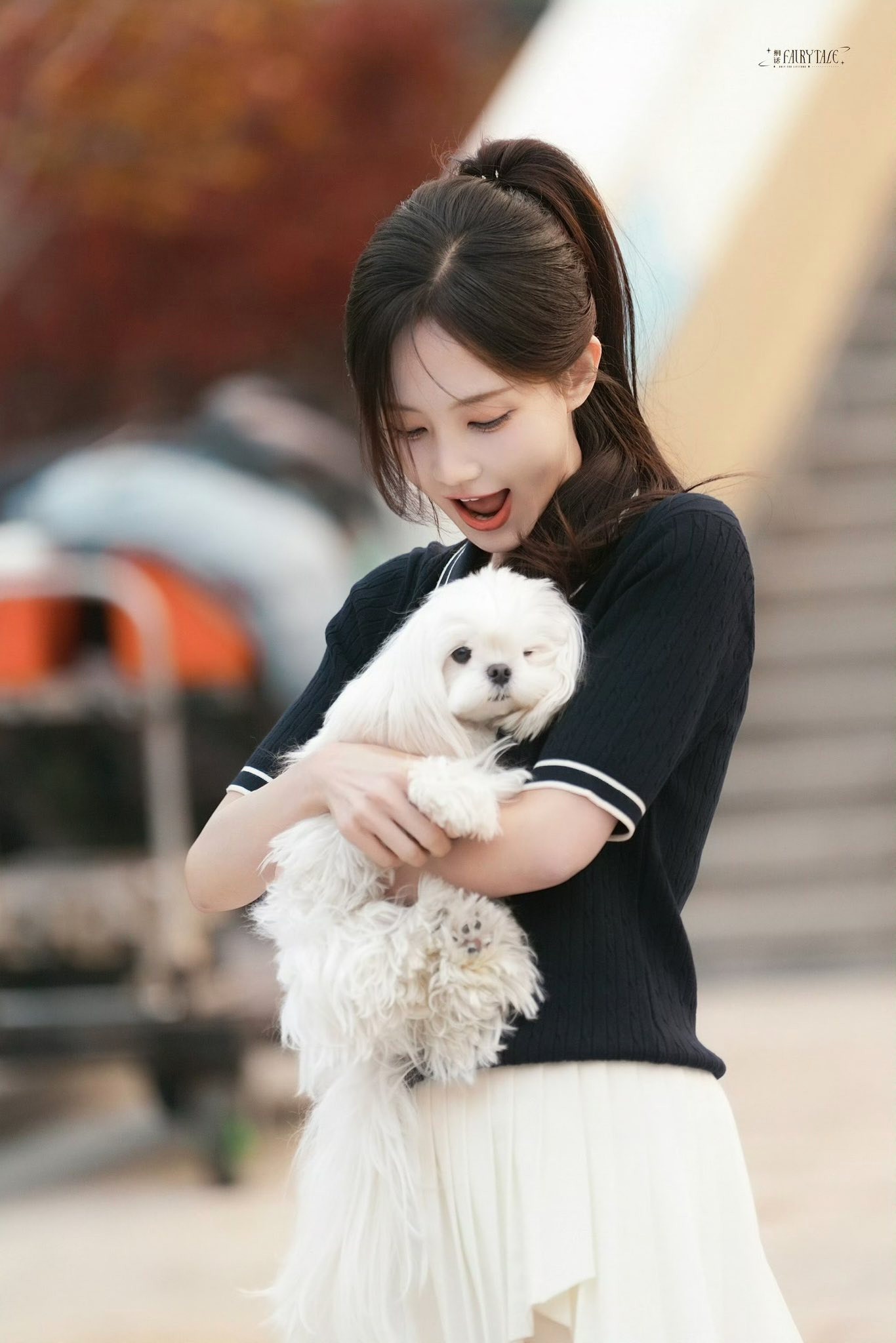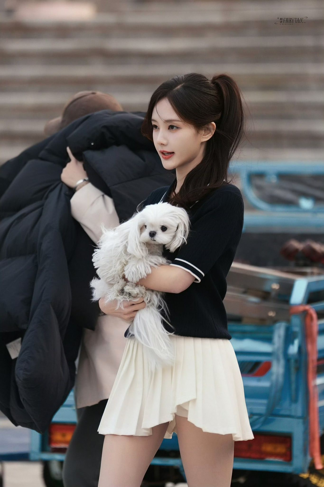 Vẻ đẹp của Lý Nhất Đồng trong tạo hình Dư Mộng tiếp tục khiến netizen “đổ gục”. Với mái tóc buộc cao trẻ trung, lớp trang điểm nhẹ nhàng và nụ cười trong veo khi ôm chú chó nhỏ, cô toát lên khí chất vừa tinh khôi vừa sang xịn của một nàng tiểu thư con nhà tài phiệt bước ra đời thực. Diện áo len tối màu phối chân váy trắng, tổng thể trông đơn giản nhưng lại cực hút mắt, kiểu đẹp nhẹ mà đắt giá.