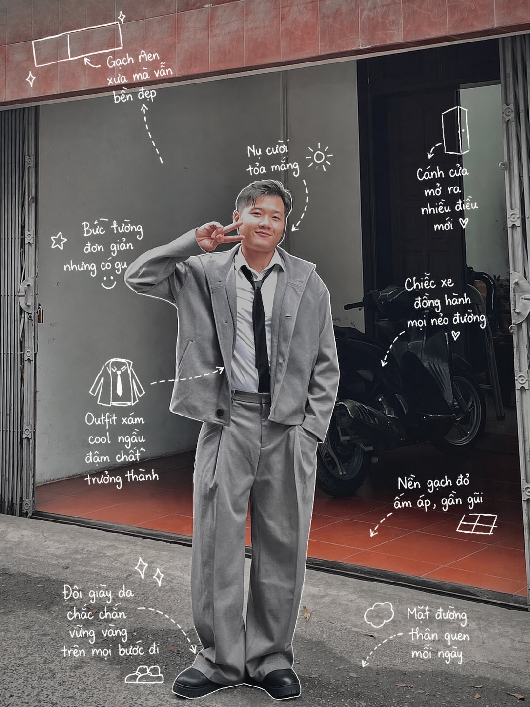 Từ cành cây, đôi giày cho đến một bông hoa ven đường,... tất cả đều được phủ lớp doodles vẽ tay xinh xắn, kèm chú thích như trong sổ tay. Không phải ảnh minh hoạ cầu kỳ hay app chỉnh màu phức tạp, chỉ cần dùng AI để biến ảnh đời thường thành tranh minh hoạ mang vibe “củ nghệ”.