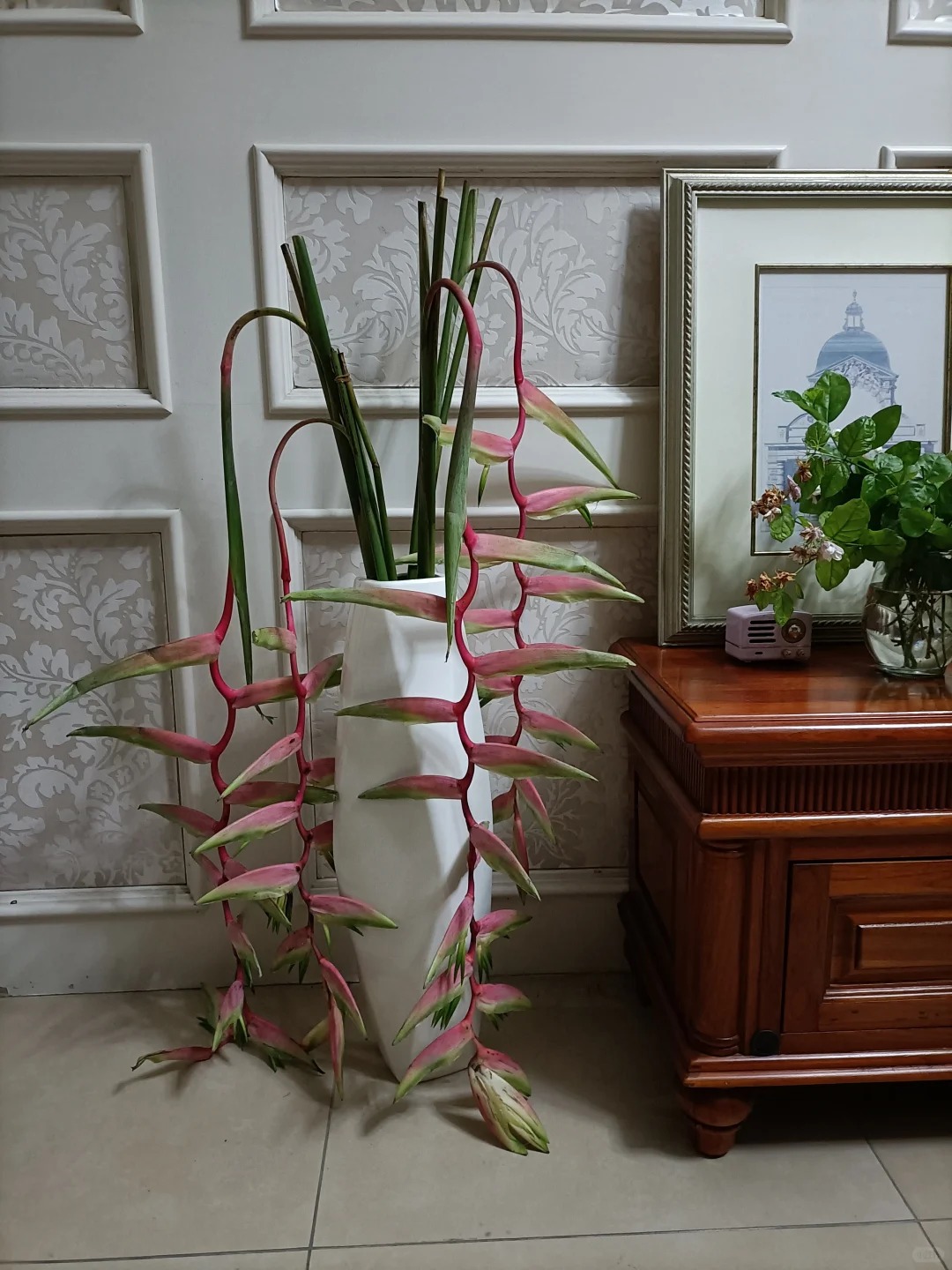 Nếu những bình hoa hồng kiêu sa hay những đóa cúc rực rỡ đã quá đỗi quen thuộc, thì dạo gần đây, hội chị em mê trang trí nhà cửa lại đang rỉ tai nhau về một "nàng thơ" mang vẻ đẹp nhiệt đới đầy hoang dại: Hoa thiên điểu rủ màu hồng (hay còn gọi là chuối pháo hồng).