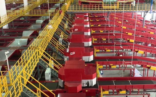 Hệ thống phân loại hàng hóa thông minh Crossbelt với hơn 750 hướng phân luồng, đạt 99,99% độ chính xác. Ảnh: J&T Express.