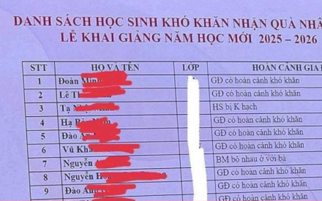 Một trường tiểu học ở Hà Nội đang gây tranh cãi khi công khai chi tiết hoàn cảnh gia đình học sinh, trong danh sách nhận quà dịp khai giảng năm học mới.
