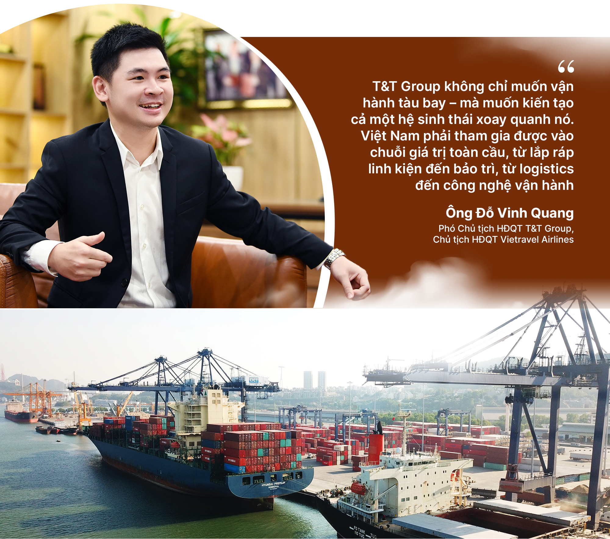 Không dừng lại ở đó, việc Vietravel Airlines sở hữu đội bay riêng và mở rộng vận tải hàng hóa (air cargo), hệ sinh thái logistics của T&T sẽ tích hợp trục vận tải hàng không, tạo năng lực vận chuyển nhanh cho chuỗi cung ứng công nghệ cao, y tế, nông sản xuất khẩu và thương mại điện tử xuyên biên giới.