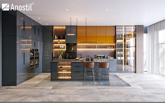 Phong cách hiện đại: Với các đường nét gọn gàng, màu sắc trung tính như bạc, xám, trắng, hoặc đen bóng, tủ bếp Anostil mang đến vẻ đẹp tinh tế, phù hợp với những căn bếp đô thị thời thượng.