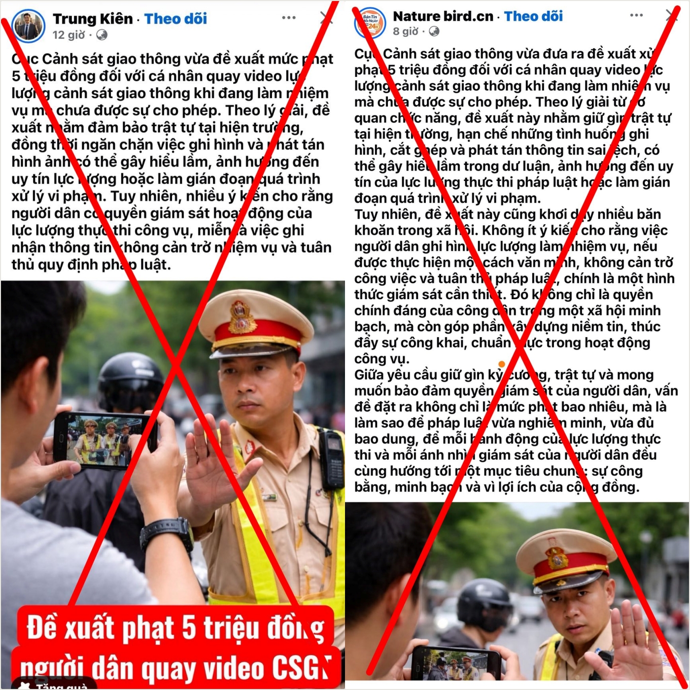 Các thông tin giả về việc xử phạt người quay clip CSGT làm nhiệm vụ