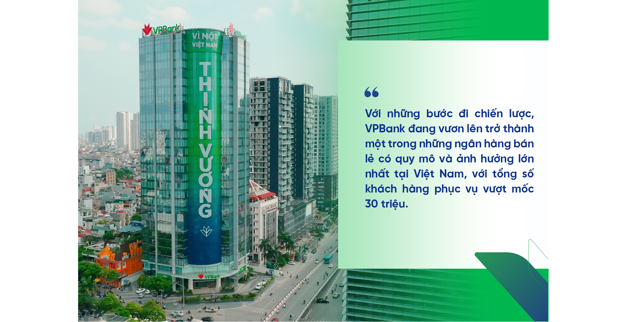 Với những bước đi chiến lược, không phải ngẫu nhiên mà VPBank vươn lên trở thành một trong những ngân hàng bán lẻ có quy mô và ảnh hưởng lớn nhất tại Việt Nam. Tính đến hết năm 2024, số lượng khách hàng cá nhân của ngân hàng đạt hơn 15,7 triệu, tăng 36% so với năm trước, đưa tổng số khách hàng phục vụ trên toàn hệ sinh thái (bao gồm cá nhân và doanh nghiệp nhỏ) vượt mốc 30 triệu.