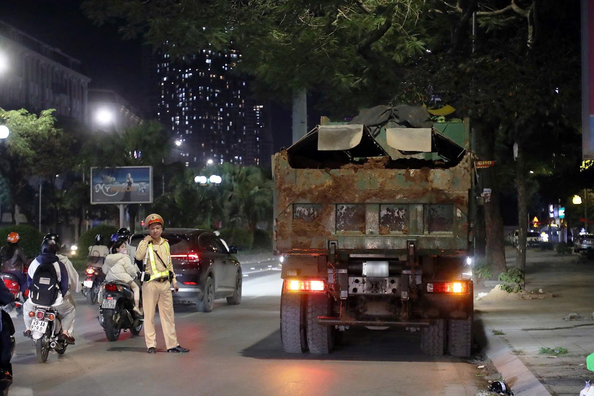 Bên cạnh đó, nhằm ngăn chặn tình trạng ô tô tải làm rơi vãi bùn đất xuống đường gây mất an toàn giao thông, tối 16/3, Đội CSGT đường bộ số 7 (Phòng CSGT Công an thành phố Hà Nội) bố trí các tổ công tác kiểm tra tại nút giao Vạn Phúc, nơi Tố Hữu (quận Hà Đông).