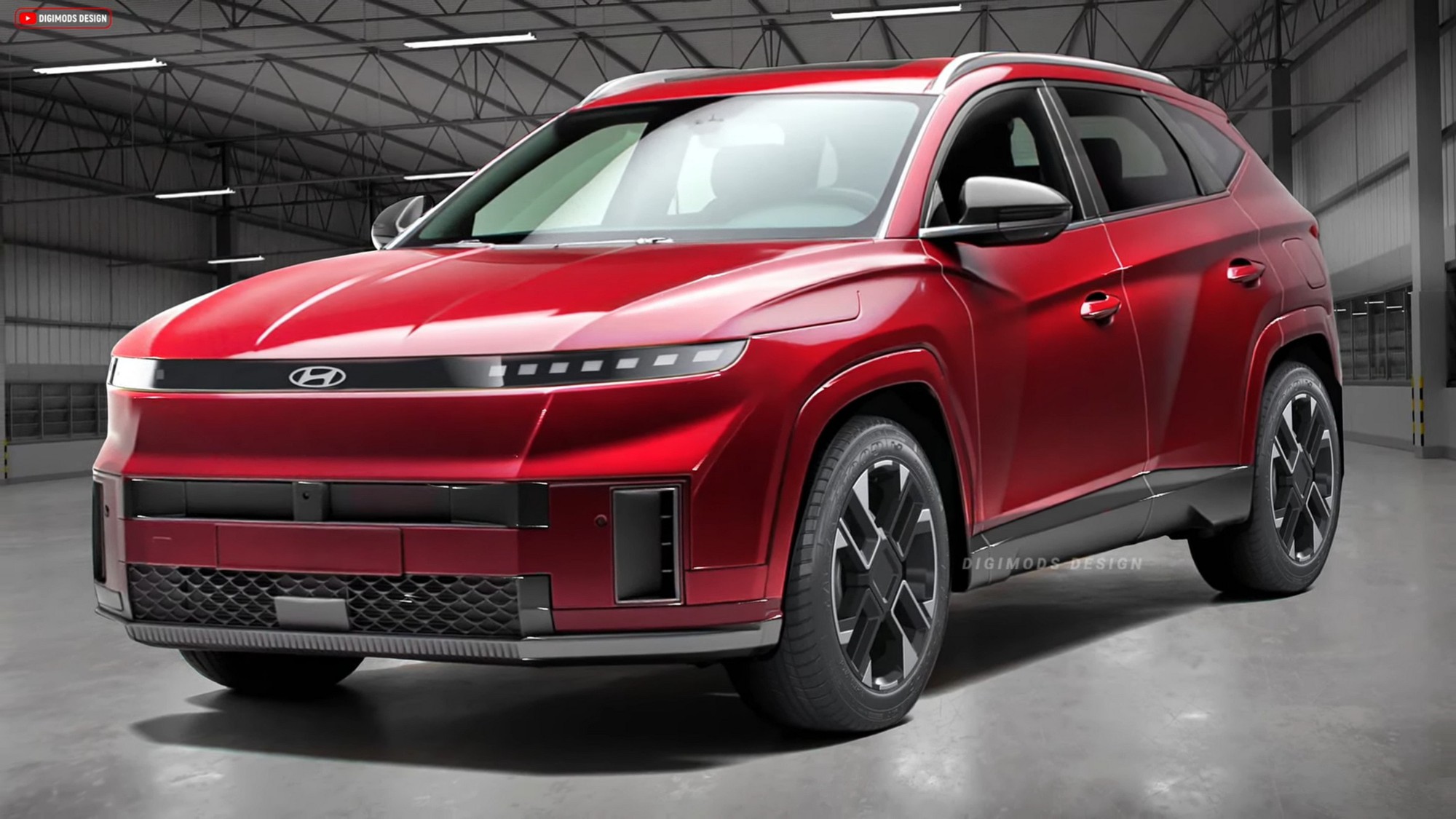 Ảnh dựng Hyundai Tucson thế hệ mới. Lưới tản nhiệt trông tinh tế hơn, cản trước phẳng hơn, các khe hút gió được thiết kế lại, cụm đèn chiếu sáng hiện đại hơn, cửa hậu thiết kế lại, cản sau và đèn hậu mới trong khi kiểu dáng tổng thể được giữ nguyên. Ảnh: Digimods Design