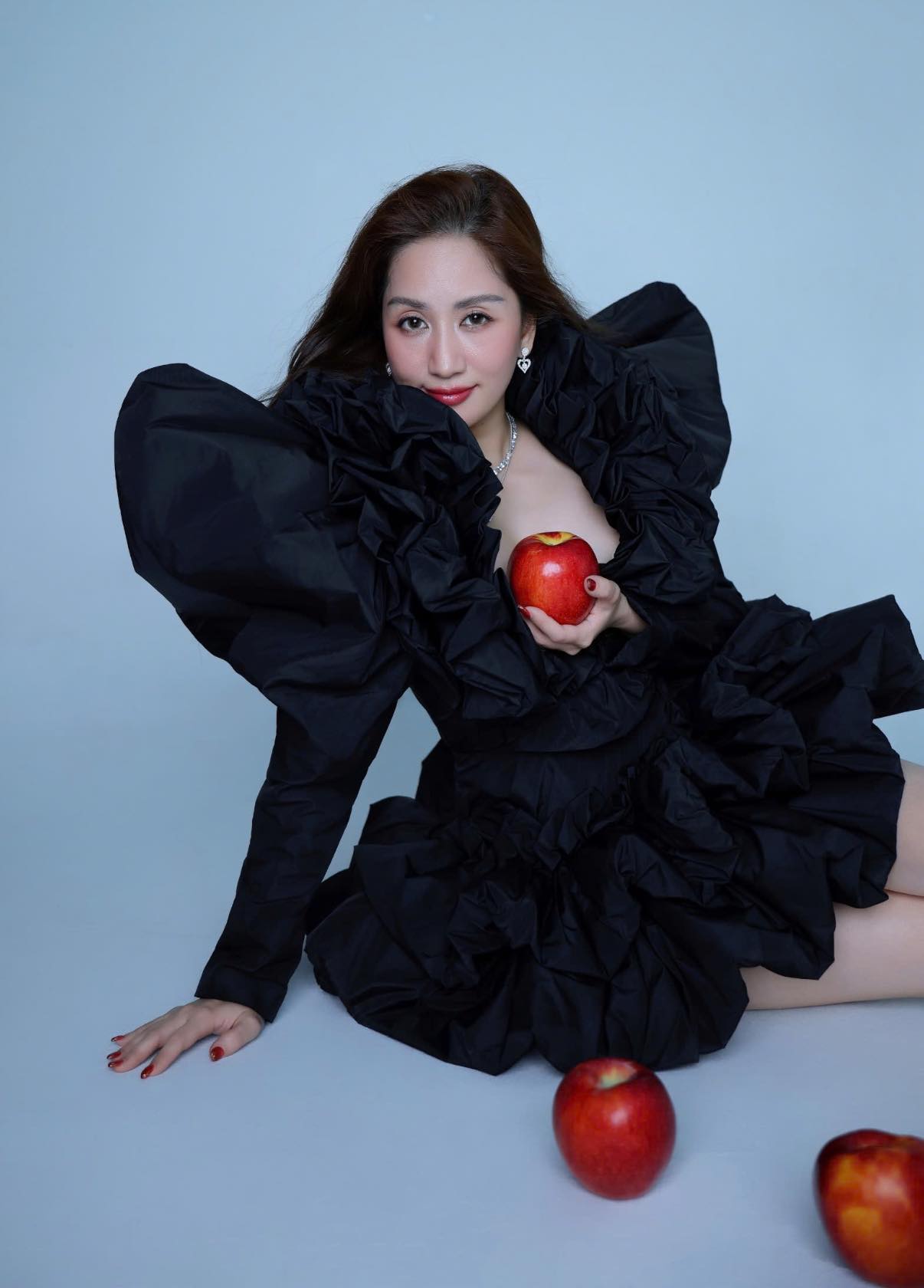 Trong bộ ảnh này, Khánh Thi ví ngọn lửa đam mê với nghề vẫn cháy âm ỉ như hình ảnh "quả táo đỏ"