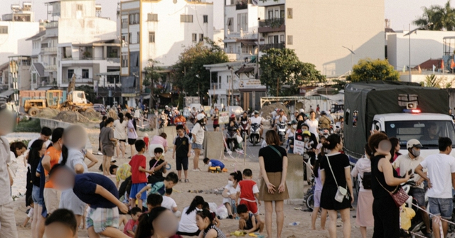 Theo ghi nhận thực tế, bãi đất trống này hiện đang tập trung đông đảo người dân ở đủ mọi lứa tuổi. Các gia đình đưa con nhỏ đến nghịch cát sát mép nước, người cao tuổi tập thể dục, trong khi nhiều nhóm bạn trẻ trải thảm ăn uống ngay trên bãi cát.