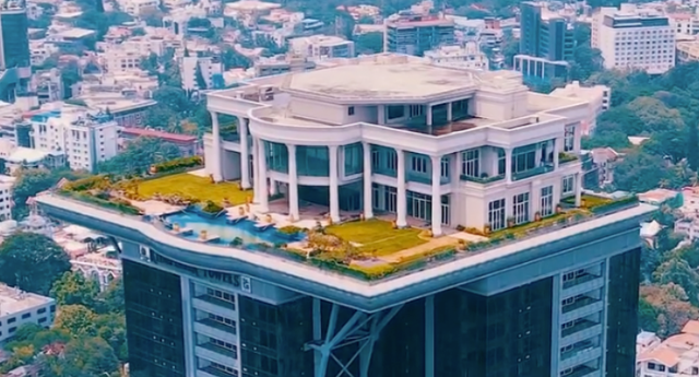 Vào năm 2010, tỷ phú Ấn Độ Vijay Mallya đã xây dựng một căn penthouse trên đỉnh tòa nhà Kingfisher Towers ở thành phố UB, Bengaluru. Với diện tích khoảng 40.000 feet vuông (hơn 3.700 m²), “cung điện trên không” này được xây dựng mô phỏng theo Nhà Trắng của Mỹ, nằm ở độ cao 400 feet (khoảng 120m), hoàn toàn tách biệt với các căn hộ bên dưới.