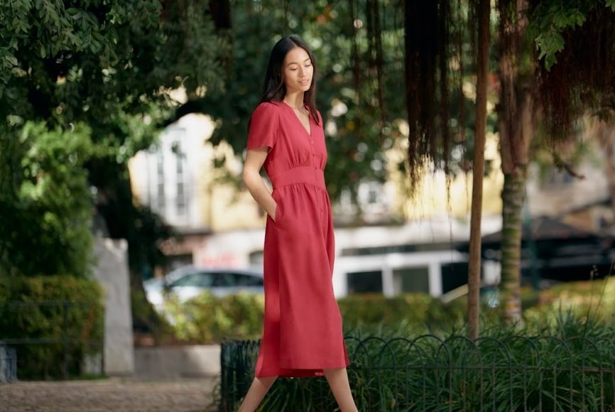 Các mẫu quần và chân váy pha linen trong bộ sưu tập vừa mang lại cảm giác thoáng mát đặc trưng của linen, vừa giữ được sự mềm mại của cotton. Bên cạnh đó, các thiết kế đầm và jumpsuit cùng chất liệu sẽ giúp hoàn thiện phong cách mà không cần phải phối đồ cầu kỳ. Dòng áo thun cũng có bảng màu đa dạng, giúp người mặc cảm nhận được độ rũ nhẹ tự nhiên và bề mặt chất liệu thoải mái chỉ có ở vải linen.