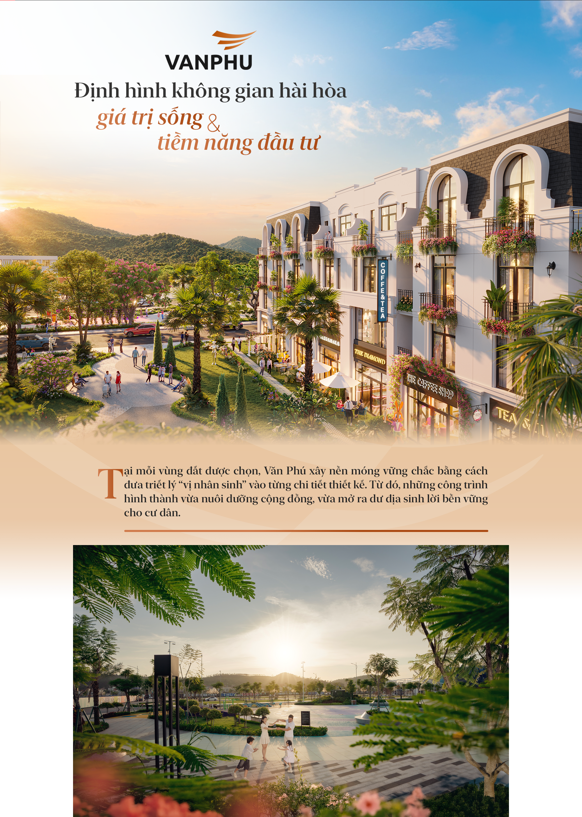 Tại dự án này, Văn Phú khéo léo kiến tạo không gian sống giao thoa giữa giá trị bản địa và nhịp sống hiện đại, giữa thiên nhiên nguyên sơ và hệ tiện ích đa dạng, giữa nhu cầu nghỉ dưỡng và tiềm năng đầu tư kinh doanh. Sở hữu gần 1 km đường bờ biển cùng chuỗi hoạt động văn hóa - lễ hội đặc sắc, dự án góp phần định hình mô hình du lịch bền vững, vun đắp cộng đồng ven biển hiện đại, gắn kết và thấm đẫm bản sắc Việt – nơi cư dân vừa tận hưởng nghỉ dưỡng, vừa nắm trong tay cơ hội đầu tư kinh doanh dài hạn.