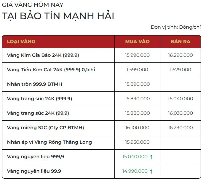 Giá vàng Bảo Tín Mạnh Hải niêm yết lúc 11h trưa 14/1.