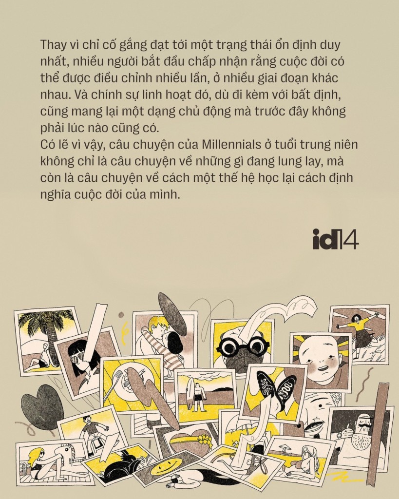 Tuy vậy, sự thay đổi này không đi kèm với một mô hình rõ ràng để thay thế. Khi những giá trị cũ không còn đủ sức thuyết phục, nhưng những hệ giá trị mới vẫn đang trong quá trình hình thành, mỗi lựa chọn đều trở nên khó đoán hơn. Và chính trong khoảng chuyển đó, Millennials bước vào tuổi trung niên không chỉ với những áp lực phải giải quyết, mà còn với một câu hỏi lớn hơn: sống như thế nào khi không còn một khuôn mẫu chắc chắn để bám vào.