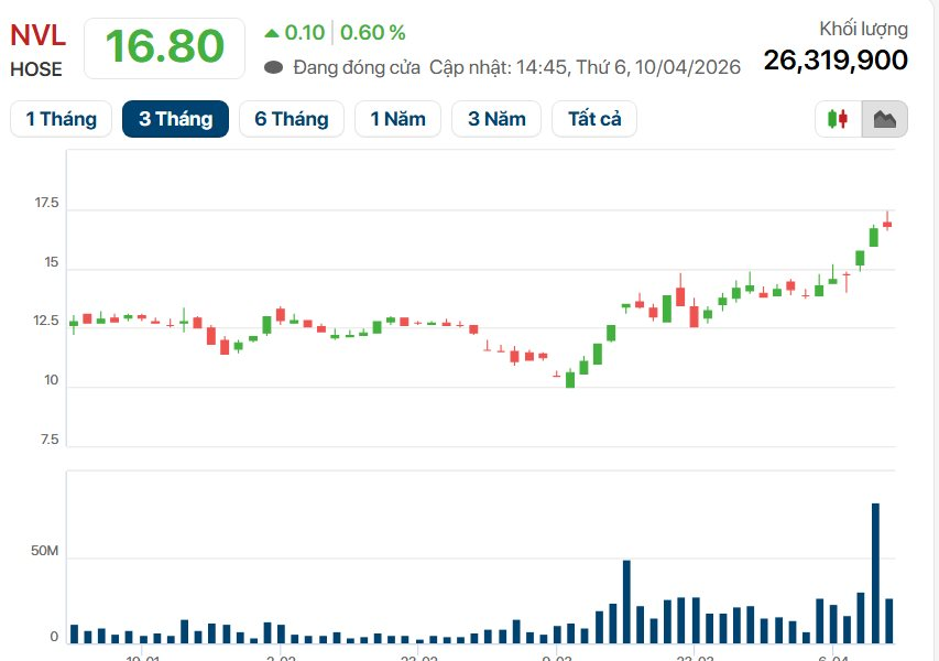 Bên cạnh đó, sau khi công bố lợi nhuận dương trong báo cáo kiểm toán năm 2025, cổ phiếu NVL đã chính thức được Sở Giao dịch Chứng khoán TP.HCM (HoSE) cấp margin trở lại, giúp khơi thông dòng vốn ký quỹ trên thị trường.