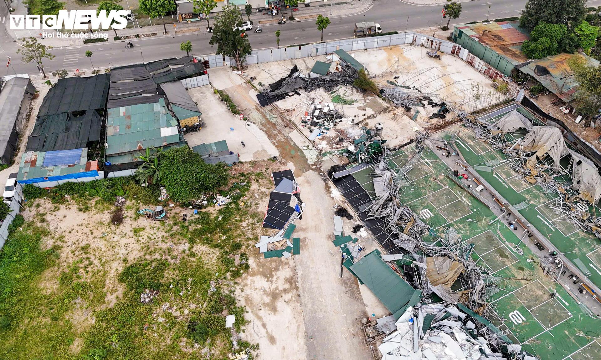 Nhiều hạng mục như mái che, khung thép, hệ thống sân bãi và các công trình phụ trợ được tháo dỡ đồng loạt.