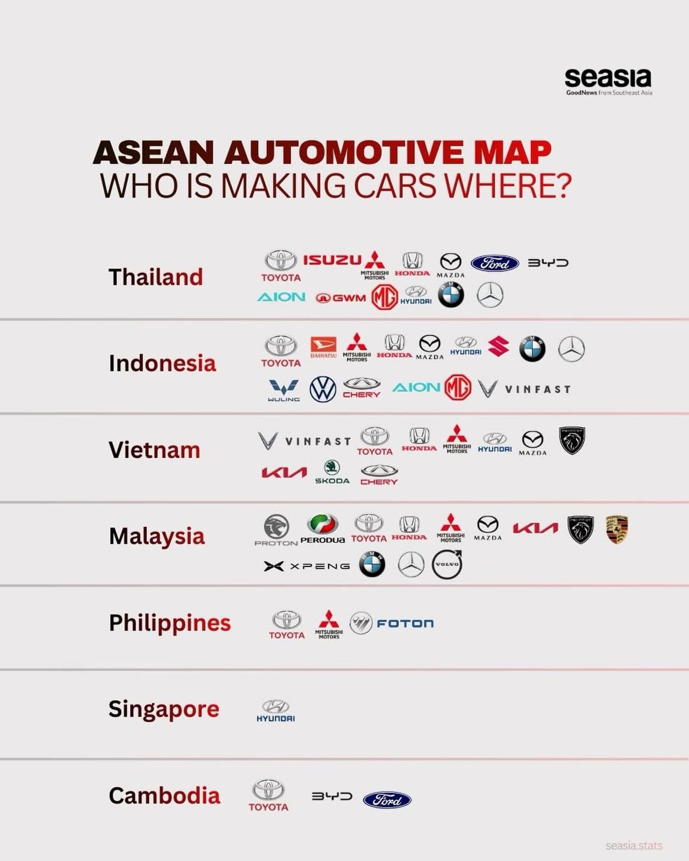 Một điểm đáng chú ý là trong khu vực hiện nay, chỉ có Việt Nam và Malaysia là hai thị trường mà thương hiệu nội địa giữ vai trò dẫn dắt. Nếu Malaysia có Proton và Perodua, thì tại Việt Nam, VinFast gần như không có đối thủ trực tiếp trong phân khúc xe điện phổ thông.