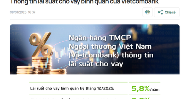 Lãi suất cho vay bình quân tại Vietcombank đã tăng lên 5,8%/năm trong tháng 12/2025, tháng thứ hai liên tiếp điều chỉnh đi lên; trong khi BIDV cũng nâng mặt bằng cho vay sau thời gian dài ổn định.