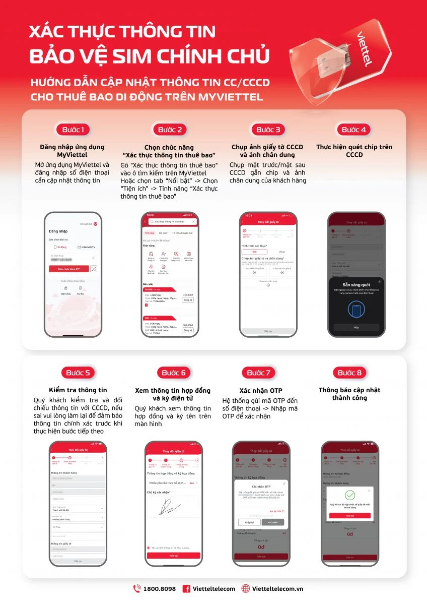 Thứ nhất, nhóm sử dụng CMND 9 số hoặc căn cước/căn cước công dân 12 số. Khách hàng cần cập nhật lại thông tin bằng CCCD gắn chip mới nhất qua tính năng "Xác thực thông tin thuê bao" trên ứng dụng MyViettel.