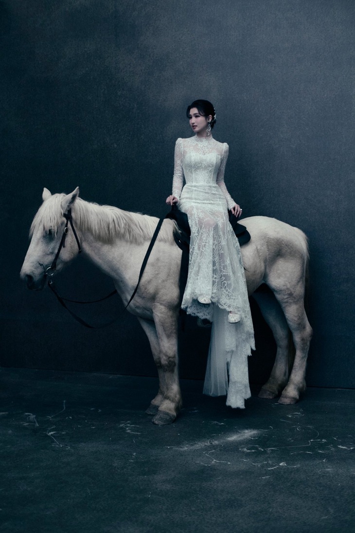 Chi tiết Phương Nhi tạo dáng trên lưng ngựa trong set ảnh lấy cảm hứng từ linh vật năm Bính Ngọ cũng cho thấy “ảnh cưới cùng ngựa” đang trở thành lựa chọn nổi bật, mang màu sắc sang trọng và khác biệt so với các concept truyền thống. Trên mạng xã hội, kiểu set-up này dễ tạo hiệu ứng viral vì vừa có yếu tố biểu tượng (ngựa – linh vật) vừa tăng tính điện ảnh cho khung hình, đặc biệt khi trang phục của chú rể được phối đồng điệu để giữ tổng thể tinh gọn và lịch lãm.