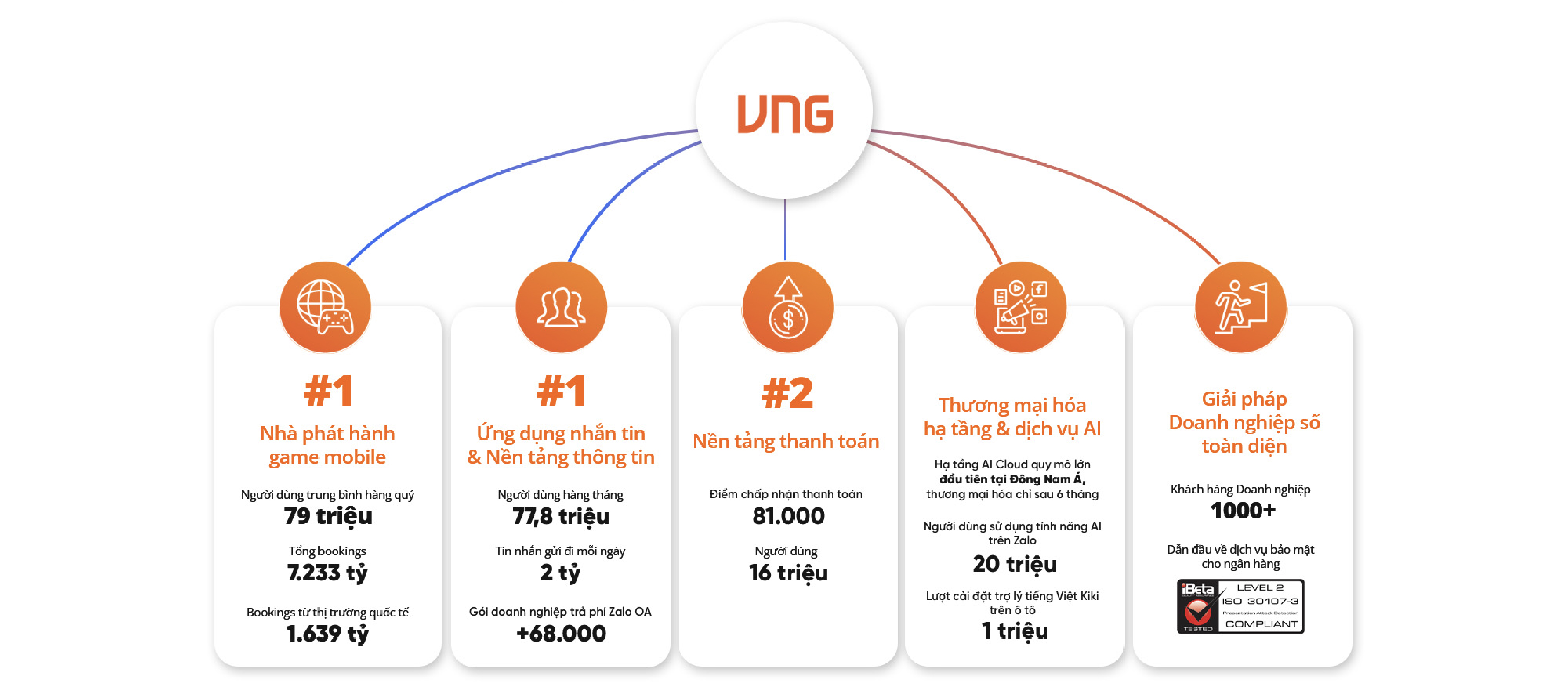 Tại Đại hội đồng cổ đông năm 2025, VNG chính thức công bố AI và Toàn cầu hóa là 2 chiến lược trọng tâm tiếp theo. Công ty đã triển khai mô hình tổ chức mới, công bố tên gọi mới - Công ty cổ phần Tập đoàn VNG - nhằm nâng cao hiệu quả vận hành và kinh doanh cho công ty mẹ và các khối kinh doanh chủ lực.