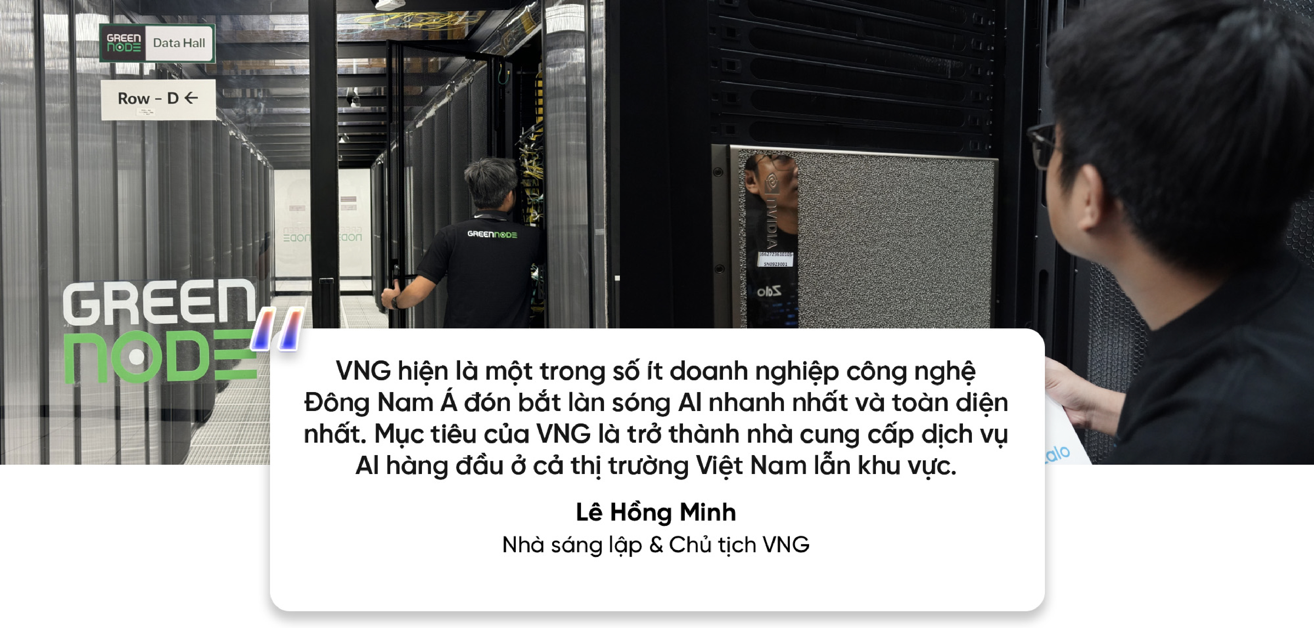 VNG bước vào chu kỳ mới không phải chỉ là lời nói suông. Tháng 5/2024, GreenNode – đơn vị kinh doanh AI Cloud của VNG – đã bắt tay cùng NVIDIA và ST Telemedia Global Data Centres (STT GDC) đưa vào vận hành một trong những trung tâm xử lý dữ liệu AI quy mô lớn đầu tiên tại Đông Nam Á, đặt tại Bangkok (Thái Lan), toàn bộ đều do đội ngũ GreenNode tự lắp đặt và vận hành. Cột mốc này chỉ 6 tháng sau cuộc nói chuyện giữa Chủ tịch VNG Lê Hồng Minh và Chủ tịch & CEO Nvidia Jensen Huang. Và khi mà nhiều dự án được công bố trong khu vực mới chỉ ở giai đoạn nghiên cứu, thử nghiệm, đội ngũ VNG đã tạo ra hàng chục triệu USD từ AI. VNG thực sự đã nói được, làm được. "Đó là hợp đồng lớn nhất từ 1 khách hàng doanh nghiệp mà chúng tôi từng ký", ông Minh nhớ lại.