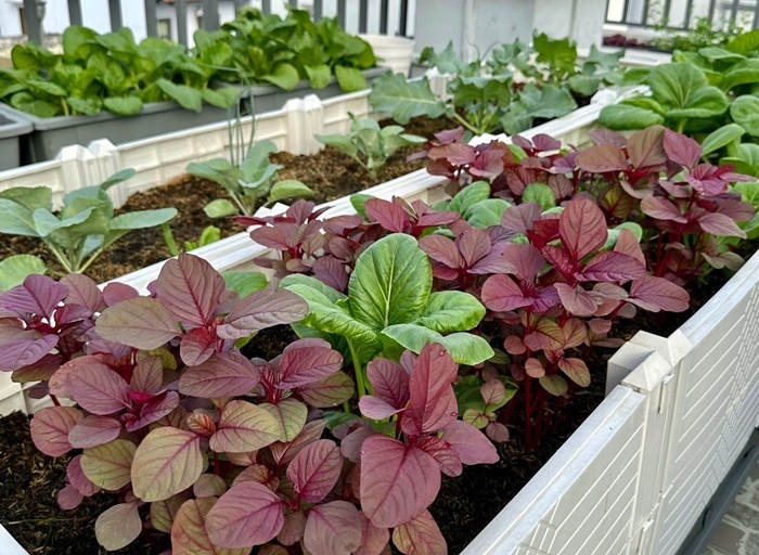 Để có được vườn rau xanh tốt, chị Uyên đặc biệt chú trọng khâu tuyển chọn hạt giống chất lượng và ưu tiên các giống cây khỏe, có khả năng kháng bệnh cao. Chế độ chăm sóc cũng được chị thực hiện đều đặn với khoảng 30 phút tưới cây vào buổi sáng và 60 phút mỗi buổi chiều. Theo chị Uyên, bí quyết quan trọng nhất chính là sự kiên trì và tinh thần học hỏi, bởi thời gian đầu chưa có kinh nghiệm, anh chị đã phải tham gia nhiều hội nhóm trồng cây trên mạng xã hội để tích lũy kiến thức.