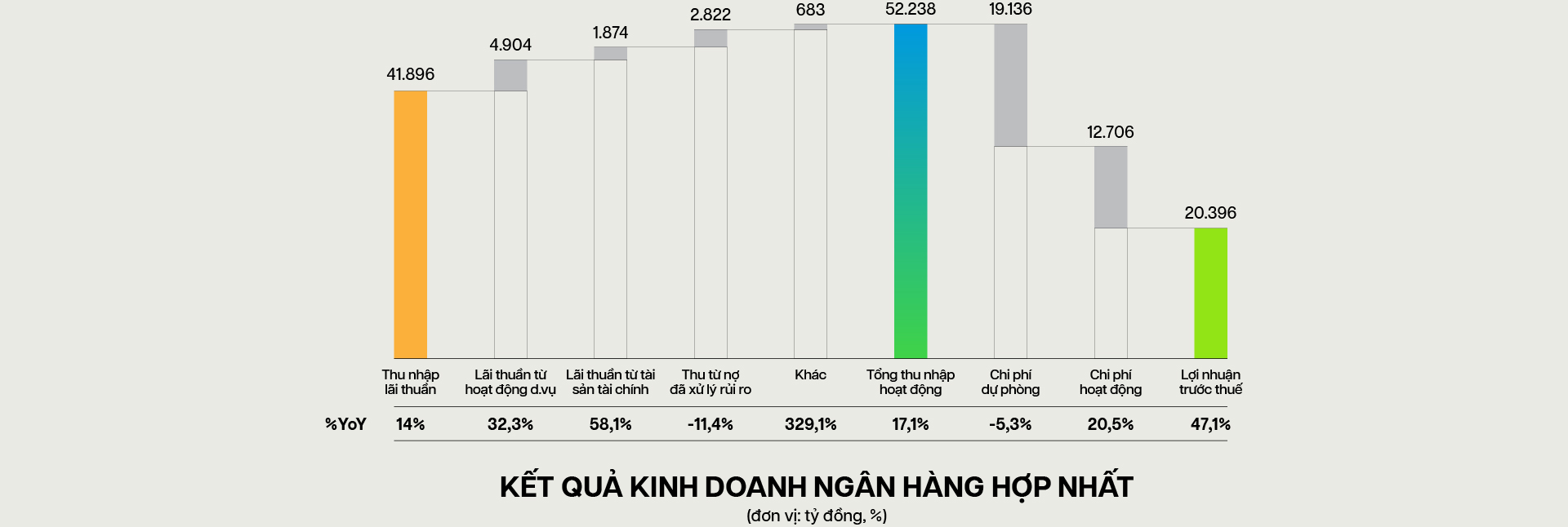 9 tháng đầu năm nay, lợi nhuận trước thuế của VPBank đạt gần 20.400 tỷ đồng, tăng 47% so với cùng kỳ; đồng thời trở thành ngân hàng tư nhân có quy mô tổng tài sản lớn nhất thị trường, gần 1,18 triệu tỷ đồng, cùng tốc độ tăng trưởng dư nợ và tiền gửi khách hàng cũng trong nhóm cao nhất. Song song với kết quả kinh doanh, VPBank còn ghi dấu bằng hai sự kiện chiến lược: tiếp nhận chuyển giao bắt buộc GPBank và hoàn tất thương vụ chào bán cổ phiếu lần đầu ra công chúng (IPO) của VPBankS thu về gần 12.713 tỷ đồng – thương vụ IPO quy mô lớn nhất lịch sử ngành chứng khoán Việt Nam.