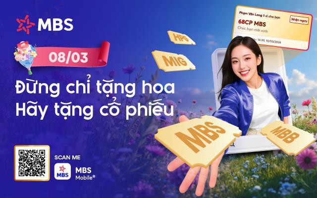 Nhắc đến quà 8/3, hoa hay mỹ phẩm thì đôi khi hơi dễ đoán. Xu hướng quà tặng 4.0 năm nay đang gọi tên những món quà mang tính "tích sản" dài lâu. Nắm bắt đúng gu của giới trẻ và dân văn phòng hiện đại, Chứng khoán MB (MBS) vừa tung ra tính năng tặng cổ phiếu cực mượt trên MBS Mobile App, biến những mã cổ phiếu xịn xò thuộc rổ VN100, MBS hay MBB thành món quà 8/3 độc đáo.