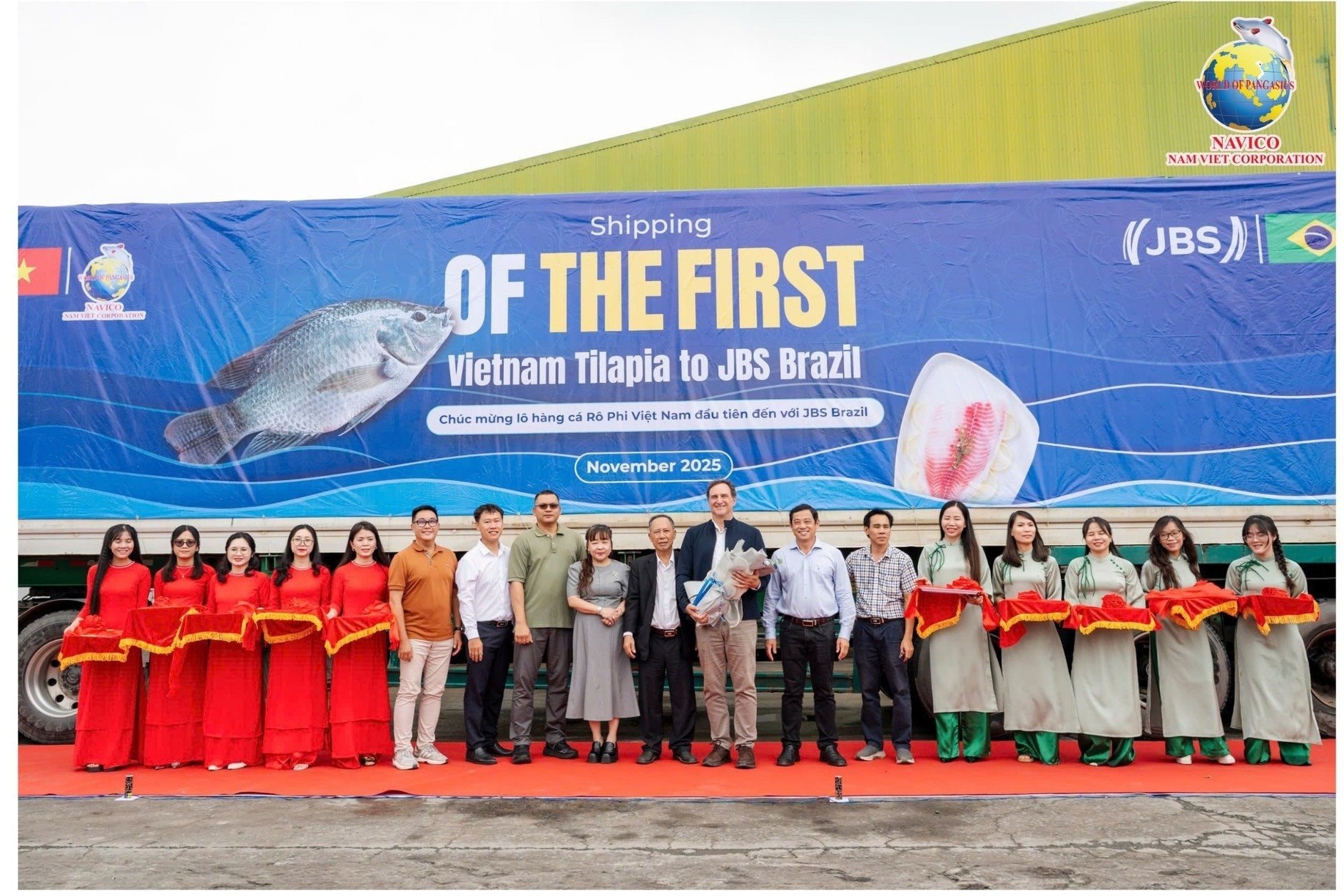 Tập đoàn Nam Việt (NAVICO) đã chính thức xuất container cá rô phi 24 tấn đầu tiên sang Brazil cuối 2025