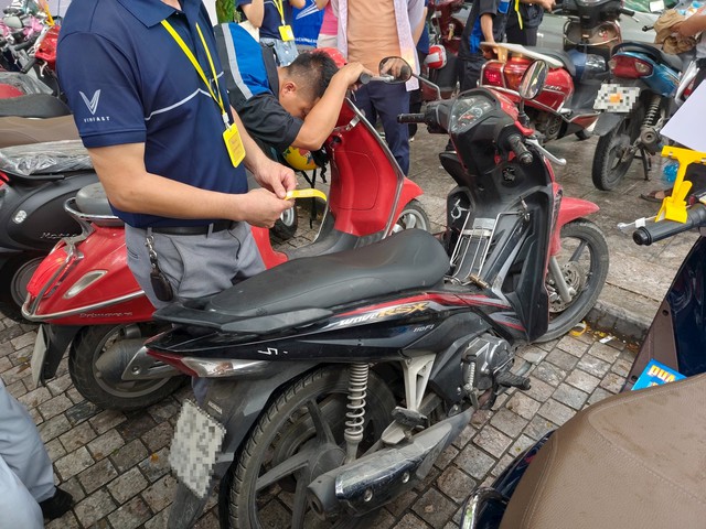 Nhiều người mang xe máy xăng cũ tới để đổi lấy một chiếc xe máy điện VinFast.