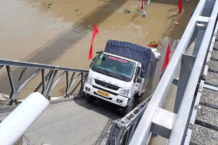 Xe tải chở gạo qua cầu 30 tháng 4 - tuyến nối tỉnh lộ 921 và đường Nguyễn Trọng Quyền (TP Cần Thơ), gây sập luồng giữa dành cho xe 4 bánh, khiến giao thông tê liệt.