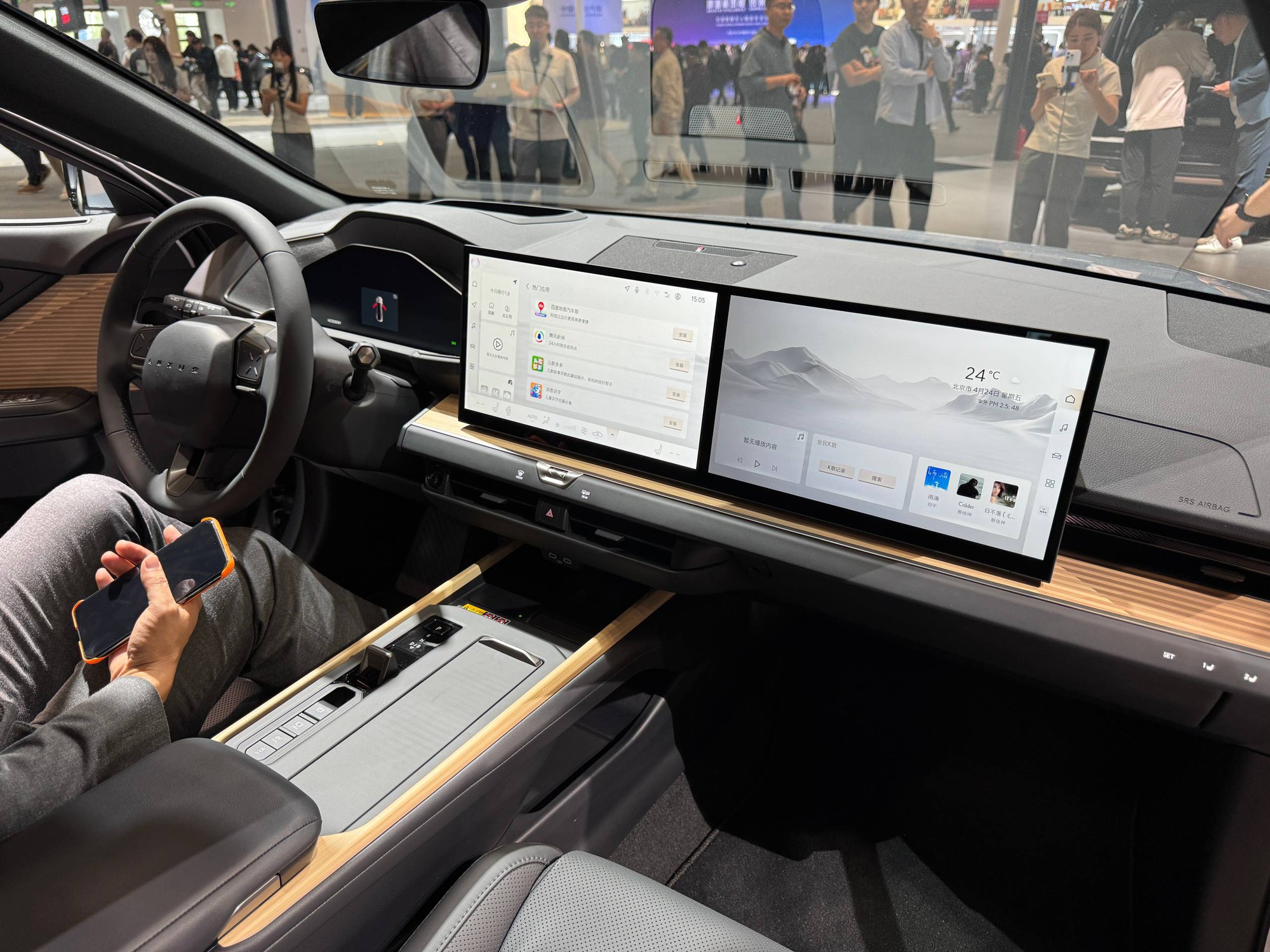 Bên trong khoang lái, ES 500e thể hiện rõ định hướng hiện đại hóa. Màn hình cảm ứng trung tâm 14 inch độ phân giải Full HD kết hợp cùng cụm đồng hồ kỹ thuật số 12,3 inch tạo nên giao diện trực quan, gọn gàng. Điểm thú vị nằm ở các chi tiết ốp tre xuất hiện khá nhiều ở khu vực táp-lô.