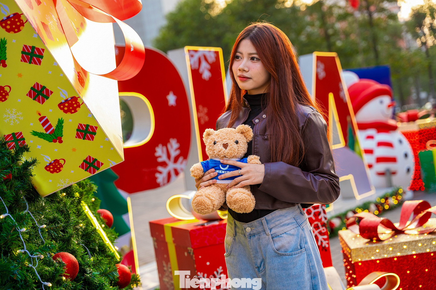 Buổi tối là khung giờ nhộn nhịp nhất. Các nhóm bạn trẻ, gia đình và sinh viên tụ tập quanh cây thông để chụp ảnh, trò chuyện và tận hưởng không khí lễ hội. “Buổi tối cây thông sáng rực, nhìn rất hoành tráng. Bọn mình thường hẹn nhau đến sau giờ học để vừa dạo chơi vừa chụp ảnh”, Thu Trang nói.